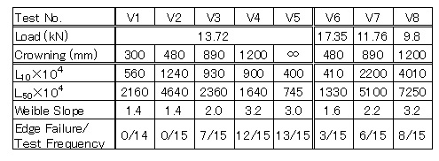 表1 φ12×12円筒ころの転がり疲労耐久試験結果(*)
