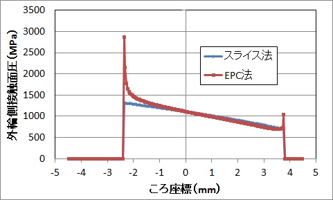参考までに、外輪側について、スライス法とEPC法を比較して図6に示します。