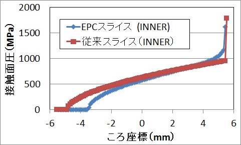 図3 左側円筒ころ軸受の内輪側接触面圧計算結果比較