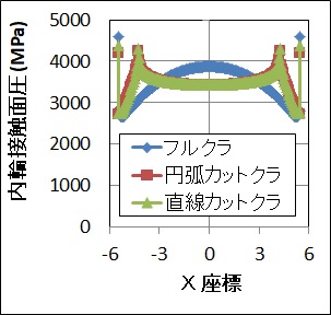 図3 最適クラウニング時の内輪接触面圧