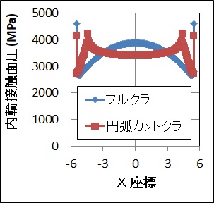 (2) 円弧状カットクラウニング(変数2個:直線部長さ、クラウニングR)