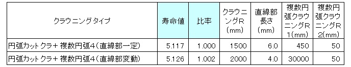 (注1)複数円弧クラウニングは左右2個セットで1個とカウントしています