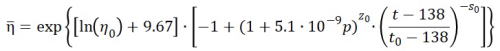 TEHLACのTEHL解析では、粘度はROELANDSの式で計算しています。ROELANDSの式は次式で表されます。