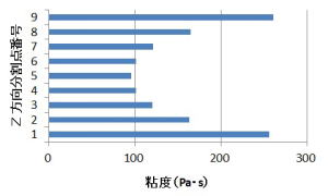 図11より、ξ=0、0.15、1.5の物体表面(Z=1)での粘度は、約289、256、38 [Pa・s]であり、ξ とともに低下していることがわかります。