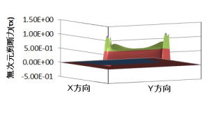 (a)(b)(c)3つの図で大きく異なるのは、剪断力の大きさです(目盛に注意下さい)。剪断力グラフの目盛最大値はξ=0.15、1.5、0の順になっており、図6の摩擦係数の大きさの順になっていることがわかります。