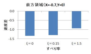 1.5でそれぞれ、-0.00021, 0.0259, 0.144となっています。即ち、すべり率とともに速度差は増加しています。