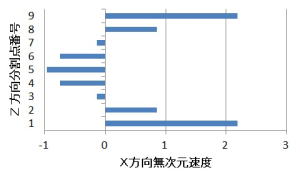 図9 物体表面でのX方向速度差(Zは油膜厚さ方向の分割点)