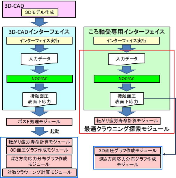 転がり疲労寿命計算モジュール・ころ軸受専用インターフェイス・最適クラウニング探索モジュール等